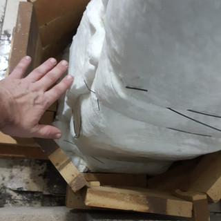אחרי שהספסל נבנה מלבנים ותא הבערה חובר באמצעות טיט קמין , הארובה הוקפה בשמיכה קרמית לבידוד והחבית הונחה כלאחר כבוד מעל הארובה הפנימית של תא הבערה.